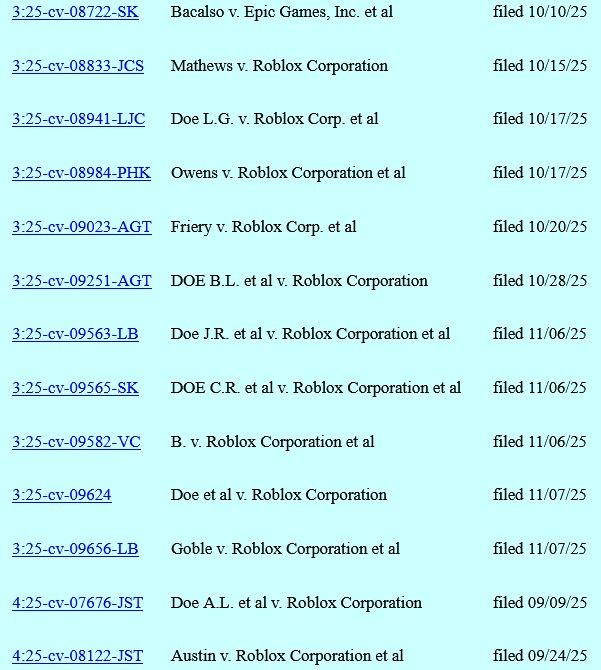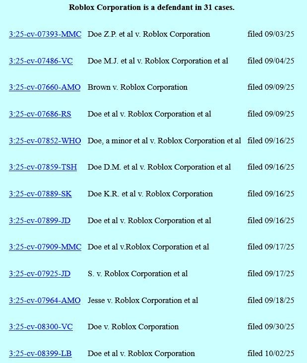 Roblox has been sued 31 times in the past two months in the Northern District of California, where it’s headquartered.